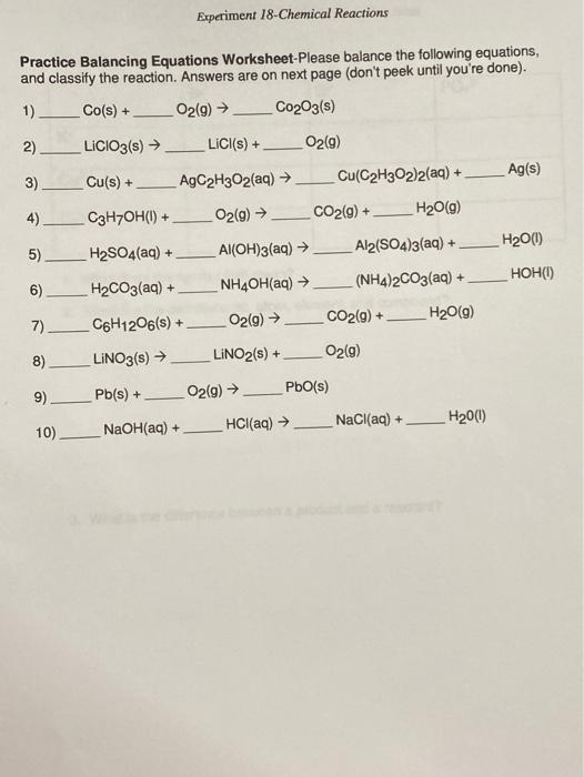 Balancing Equations Worksheet Answers Chemical Substances Mole Unit from imgv2-2-f.scribdassets.com Balancing equations practice worksheet answer key wp landingpages from balancing chemical equations practice worksheet with answers . 49 balancing chemical equations worksheets [with. Department of chemistry and physics. If you can balance these, you can balance any equation given in class. balancing chemical equations x + y xy introduction game. More like this · 50 balancing chemical equation worksheet | chessmuseum template library · 49 balancing chemical equations worksheets with answers. So, with one final adjustment, we get our final answer:. If you are new to balancing chemical equations this video will give you the practice you need to be successful.